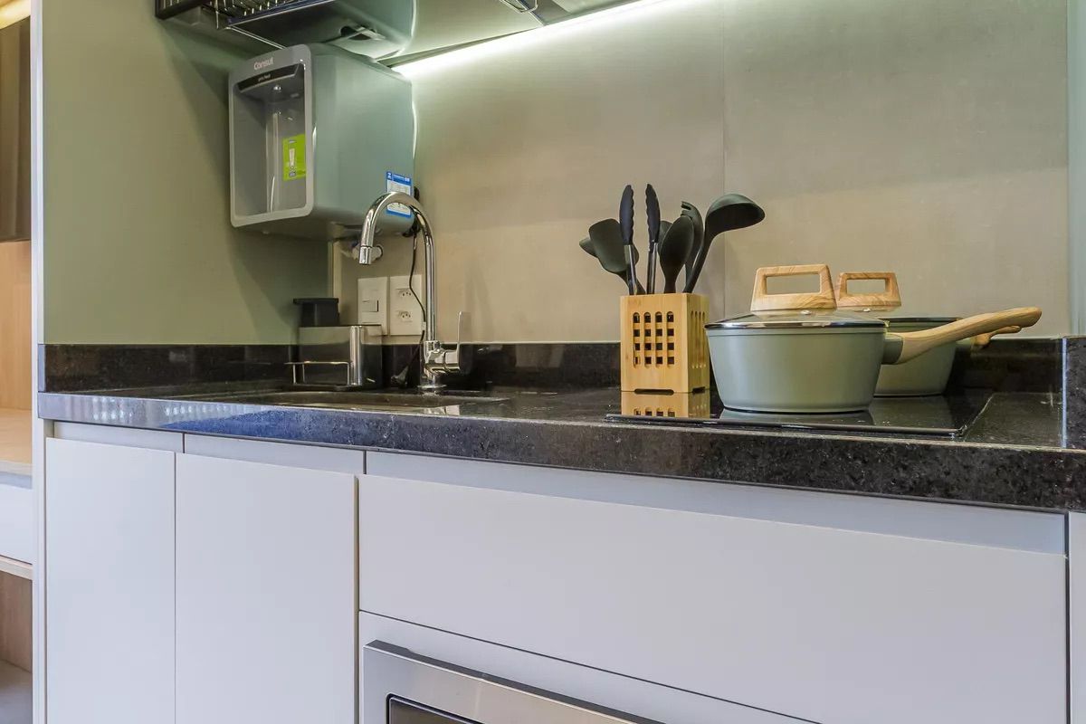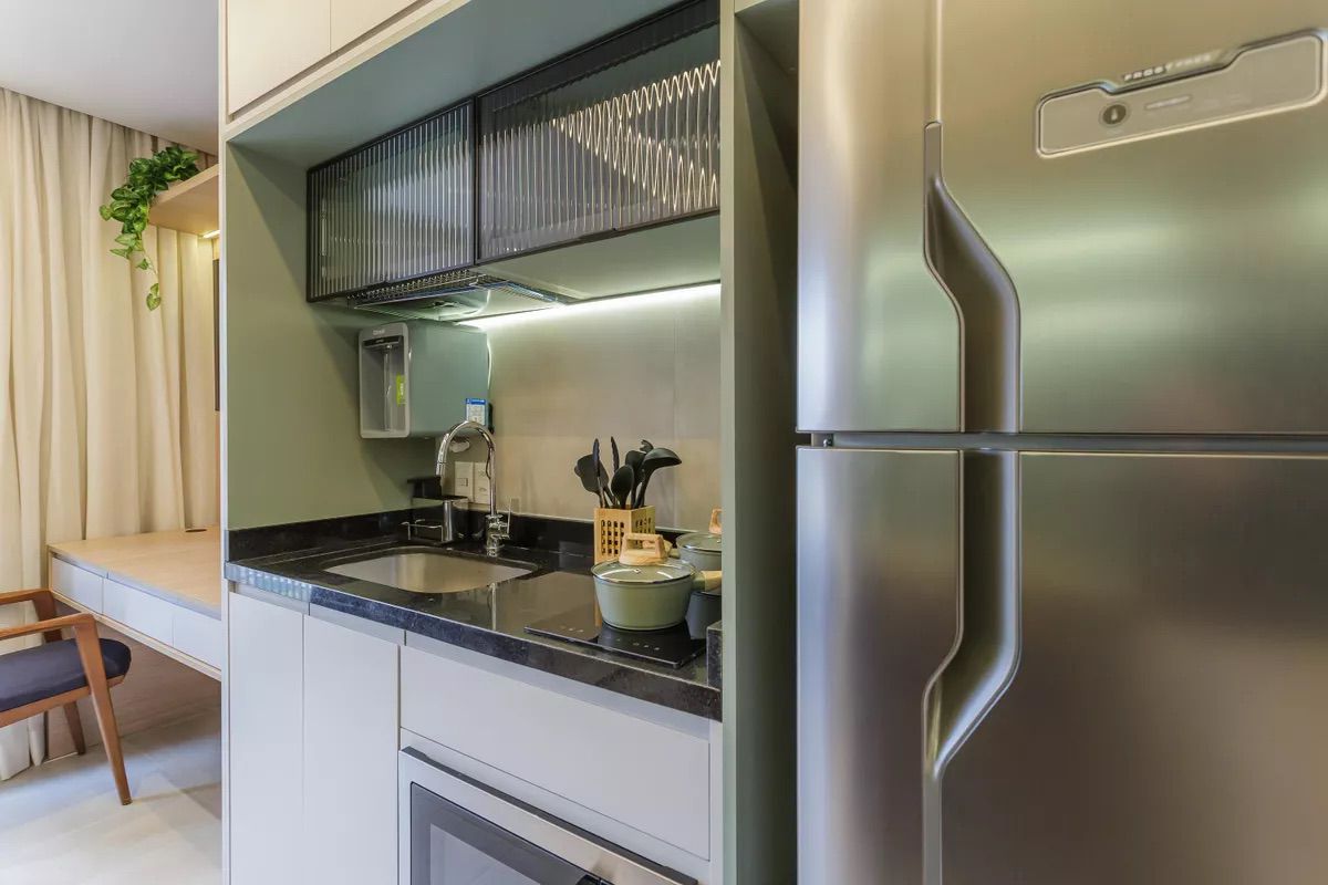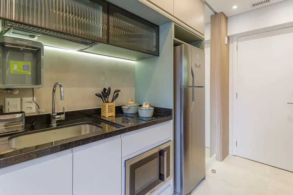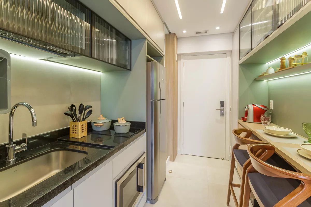 Projeto contemporâneo e funcional, pensado para otimizar espaços compactos com elegância. A paleta clara amplia a percepção de amplitude, enquanto a marcenaria sob medida, a iluminação linear e os nichos integrados garantem conforto, fluidez e sofisticação no uso diário.